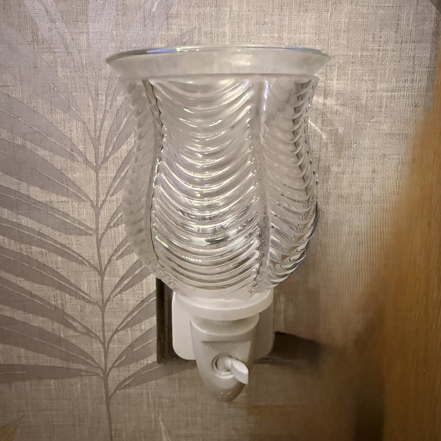 A beautifully simple plug-in wax warmer designed to fill your home with fragrance while adding a soft, elegant glow. The clear ribbed glass shade gently diffuses the light, creating a cosy atmosphere as your favourite wax melts warm through.